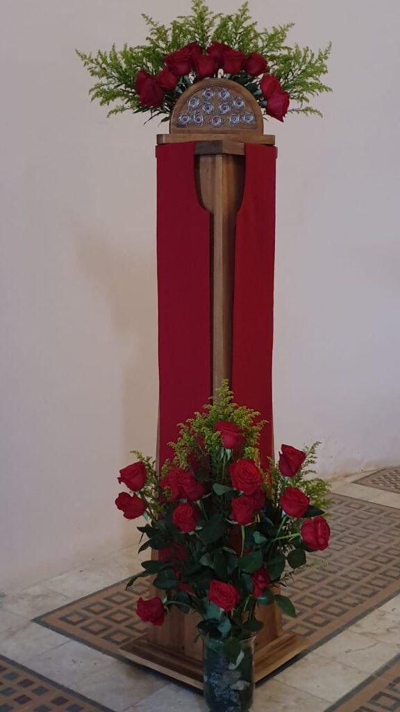 5. Pasemos ahora a la mesa de la Eucaristía, de la acción de gracias por la entrega del primer mártir, del primer testigo del Dios amor, Jesucristo nuestro Señor. Celebramos que él está vivo, que triunfó sobre la muerte y vive resucitado, y por eso puede comunicarnos su vida a través de la Palabra que hemos escuchado, y del sacramento que vamos a celebrar. Vamos a comer en este banquete el mejor alimento: cuerpo entregado, amor sin límites, y sangre derramada para la salvación de todos.